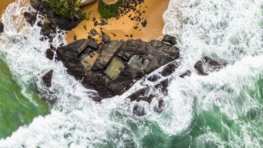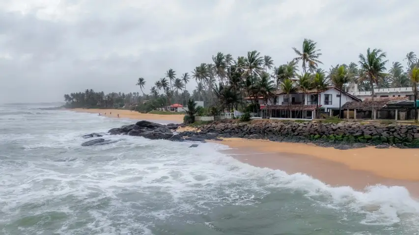 One of Sri Lanka’s most famous beaches with calm turquoise waters ideal for swimming, framed by palm trees and beachside cafés.