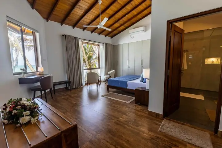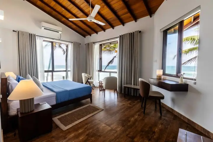 Welcome to your dream escape – a stunning four-bedroom, fully air-conditioned beachfront luxury villa perfectly positioned on the scenic Colombo-Galle main road. Just 5 minutes from Hikkaduwa's vibrant tourist hub and 15 minutes from the historic charm of Galle Fort, this villa offers both serenity and convenience.