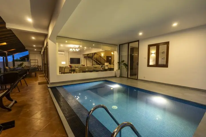 A covered pool framed by open verandas — your haven for relaxation.