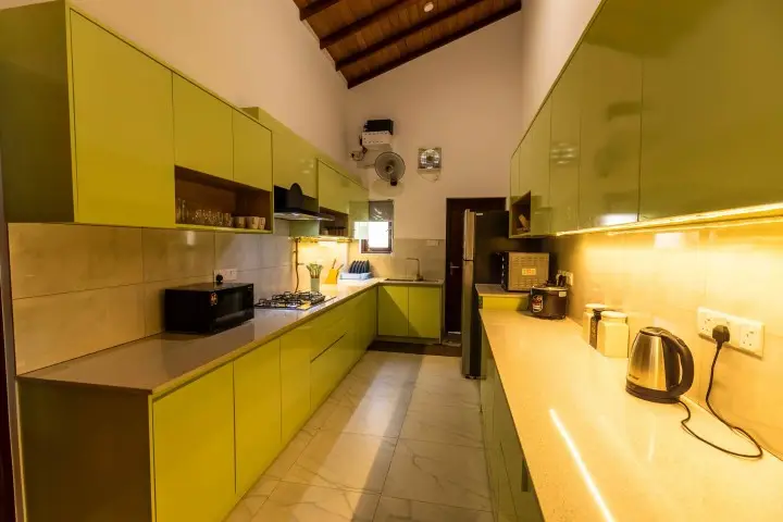 Cook your own meals in the modern kitchen or let the in-house chef craft delicious local and international dishes. Gather in the spacious living area featuring a 65" TV or dine together at any of the two elegant 10-seater dining tables – perfect for memorable moments with friends and family.